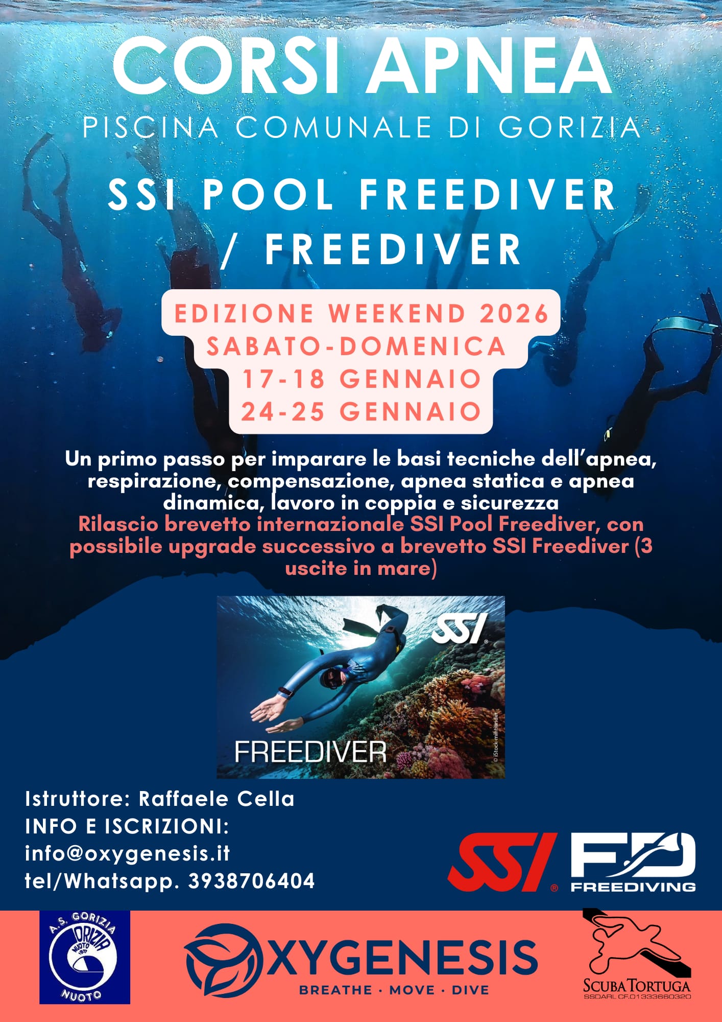 Un primo passo per imparare le basi tecniche dell'apnea, respirazione, compensazione, apnea statica e dinamica, lavoro in coppia e sicurezza.